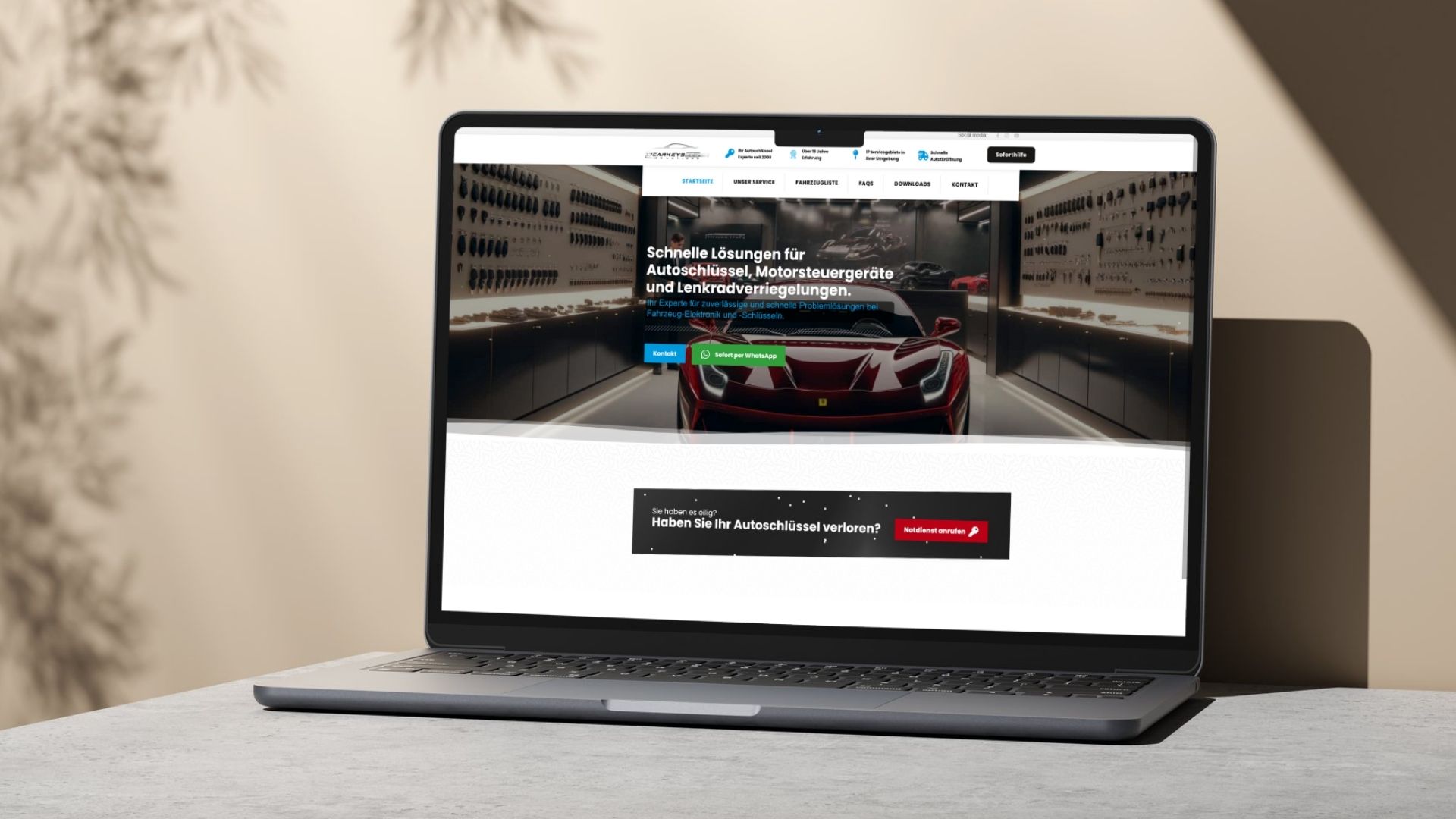 Die neue Website präsentiert CARKEYS PRO als verlässlichen Partner in Notsituationen und schafft eine klare Markenidentität im Wettbewerbsumfeld.
